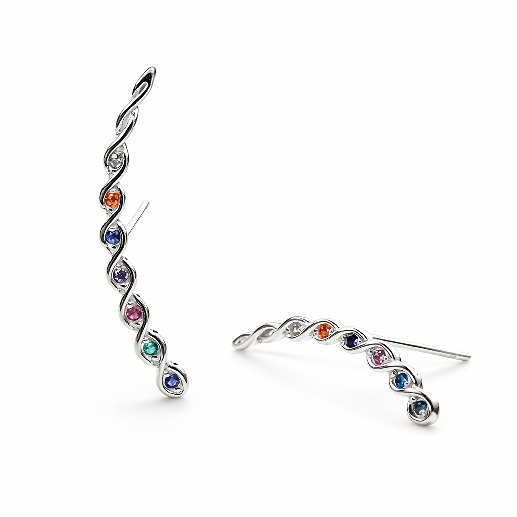 O Brinco Ear Cuff Bolinhas Rainbow em Prata 925 é a fusão perfeita entre modernidade e delicadeza. Seu design curvado acompanha a orelha com sutileza, enquanto as zircônias coloridas cravejadas adicionam um toque vibrante e sofisticado. Uma peça leve e versátil, ideal para compor looks autênticos e cheios de brilho.