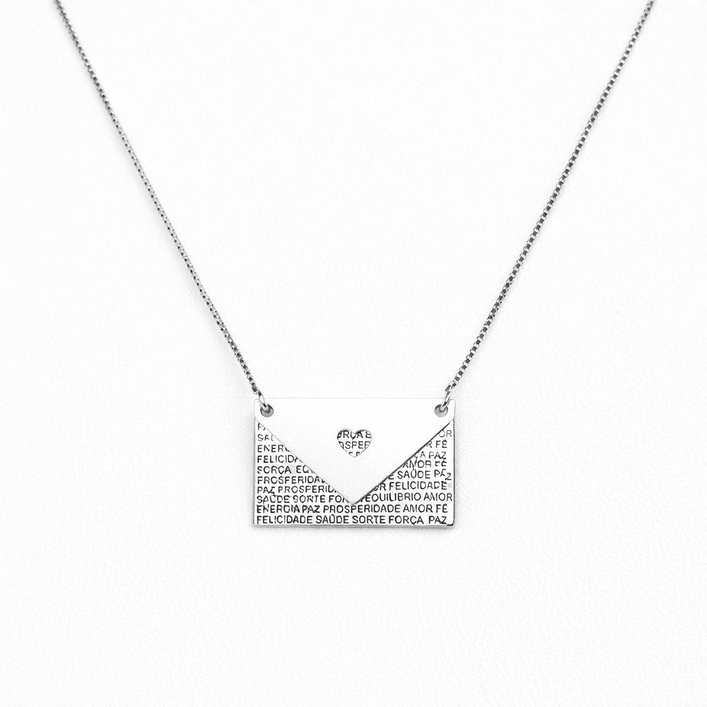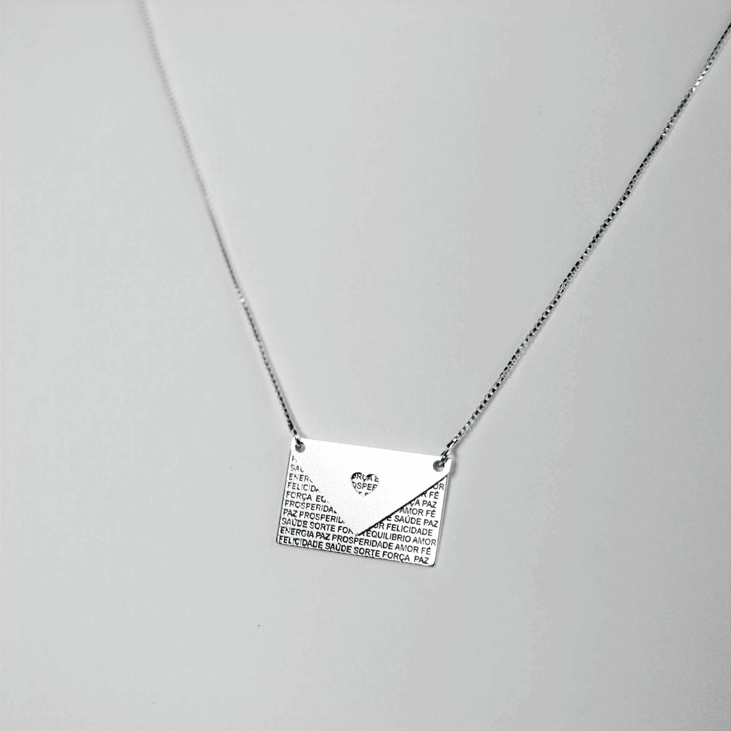 O Colar Carta de Amor é uma joia feita para carregar sentimentos no peito. Seu pingente fixo em formato de carta traz palavras de felicitações gravadas com delicadeza. Feito em Prata 925, com 42cm, é uma peça que combina significado e beleza, ideal para presentear ou usar como lembrete diário daquilo que te move por dentro.
