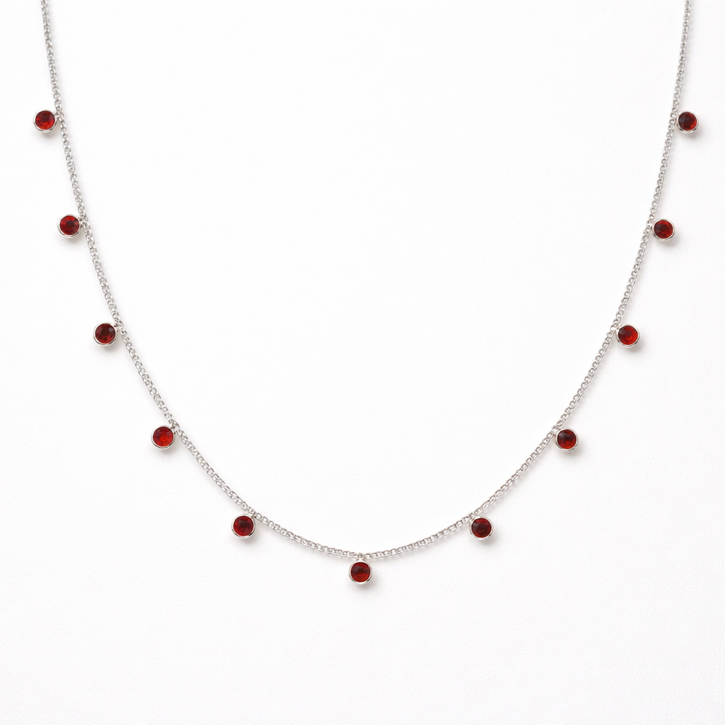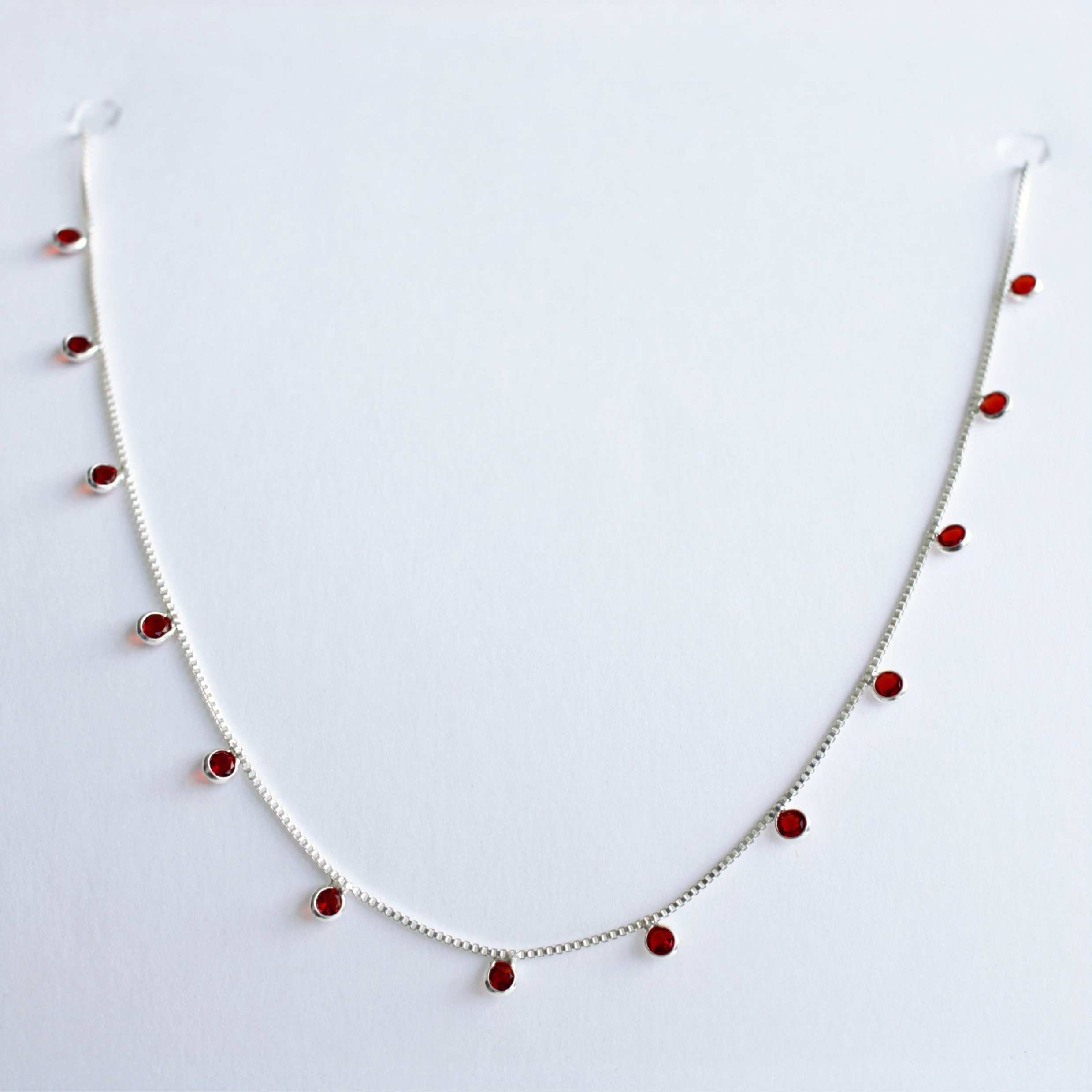 O Colar Gargantilha Zircônia Vermelha em Prata 925 , com 41 cm, é a união perfeita entre delicadeza e sofisticação. Seu design minimalista destaca zircônias vermelhas, irradiando brilho e elegância. Perfeito para quem busca um acessório versátil, que adiciona um toque de cor e luminosidade ao look.