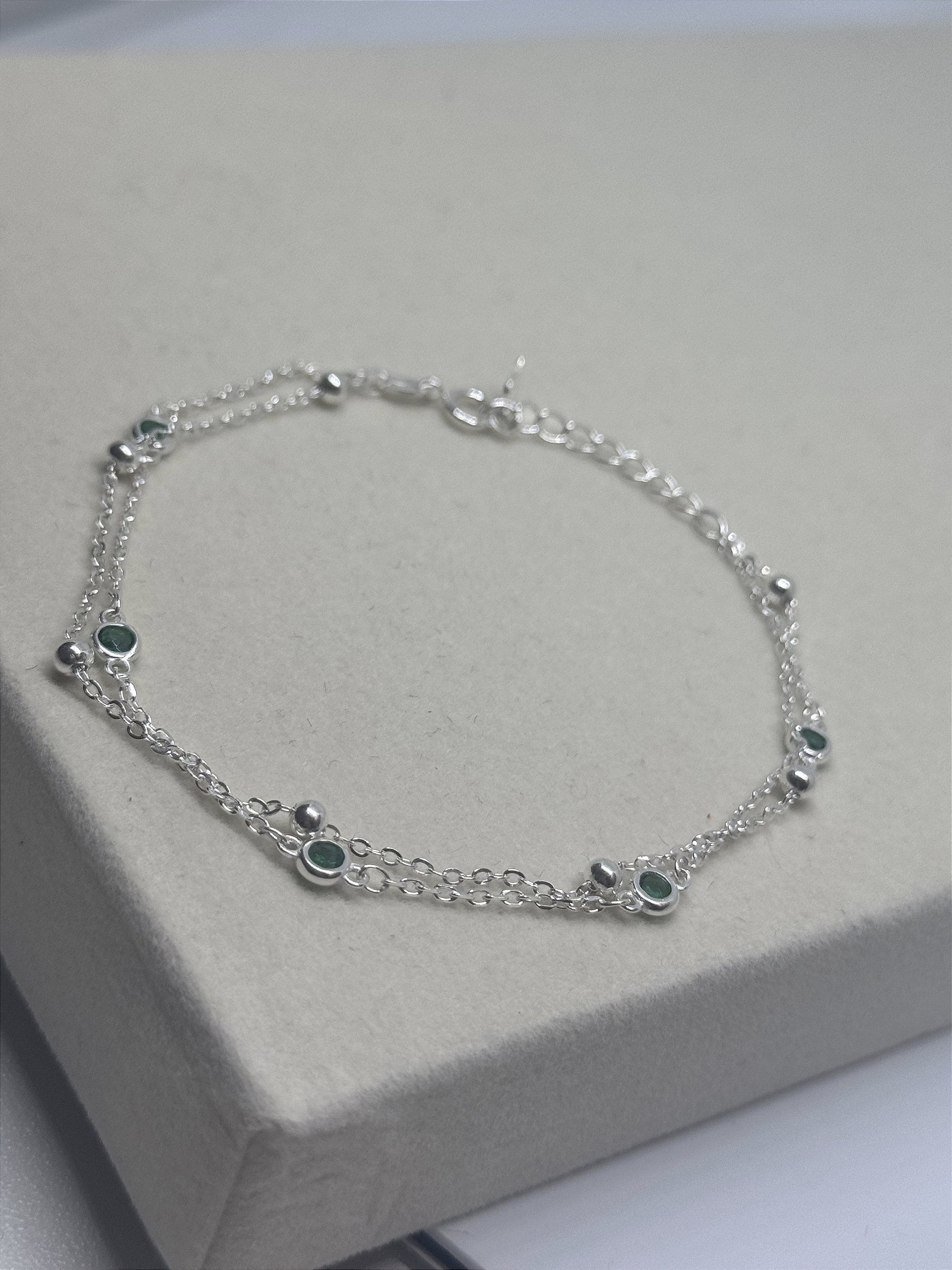Elegância em dobro: a Pulseira Dupla com Zircônias Verdes é feita em Prata 925 e combina duas correntes delicadas com o brilho intenso das pedras. Um acessório que ilumina o visual com sofisticação e charme. Use sozinha ou componha com outros modelos para um efeito ainda mais poderoso.