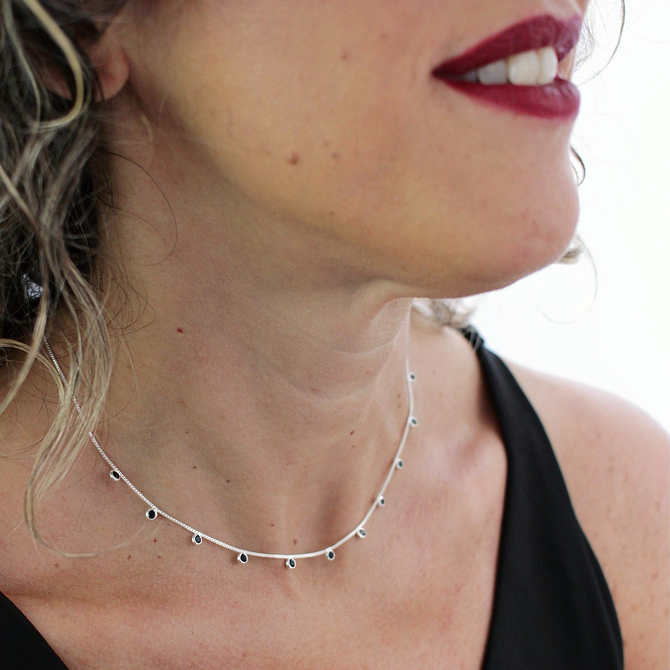 O Colar Gargantilha Zircônia Preta em Prata 925 , com 41 cm, é a joia perfeita para quem ama brilho e cores. Com zircônias pretas cravejadas, essa peça delicada e sofisticada adiciona elegância ao seu visual. Versátil e cheia de personalidade, pode ser usada sozinha ou combinada com outros colares para um efeito ainda mais marcante.